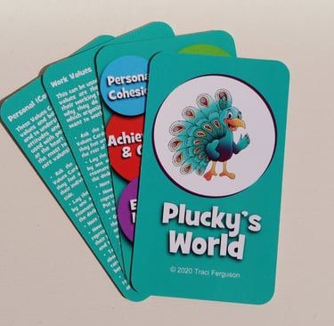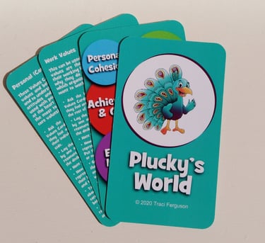 Traci has been a trainer and mentor for over 30 years. She has created a series of cards as a fun and colourful visual aid to support her mentoring and training workshops with children, young people and adults, helping them to recognise and communicate their Strengths and Values