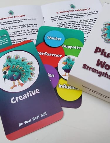 I work with a range of ages providing information, advice and guidance on careers and education. One of the jobs I do is writing CVs. I often find it difficult to get clients to identify their strengths and key skills. Not anymore!! Plucky's World Strengths Cards are pretty amazing! They are a distraction for the clients as they have something to do, they are written clearly and are colour coded which puts the strengths into workable groups and they are a fun tool to use.